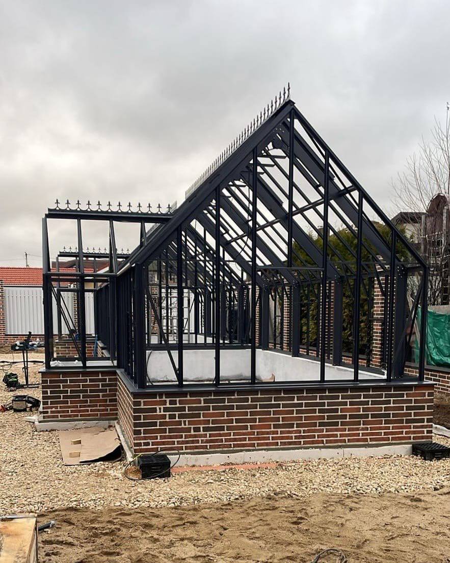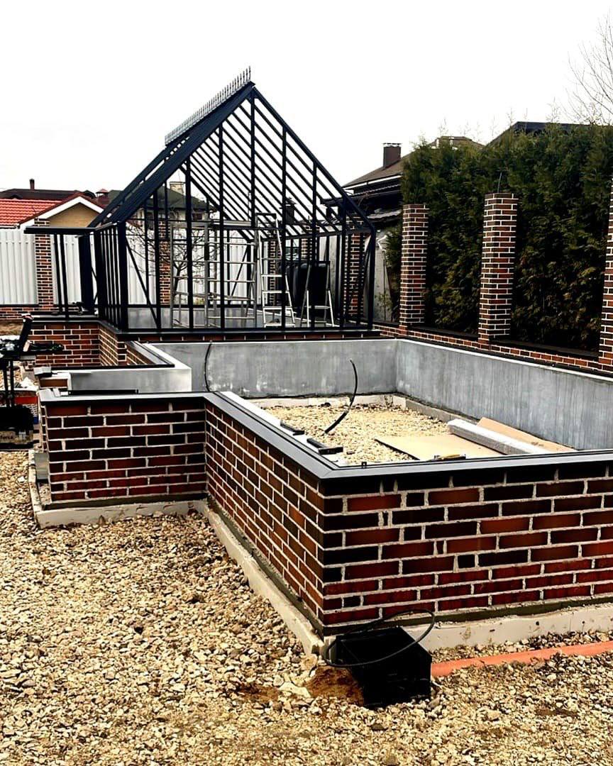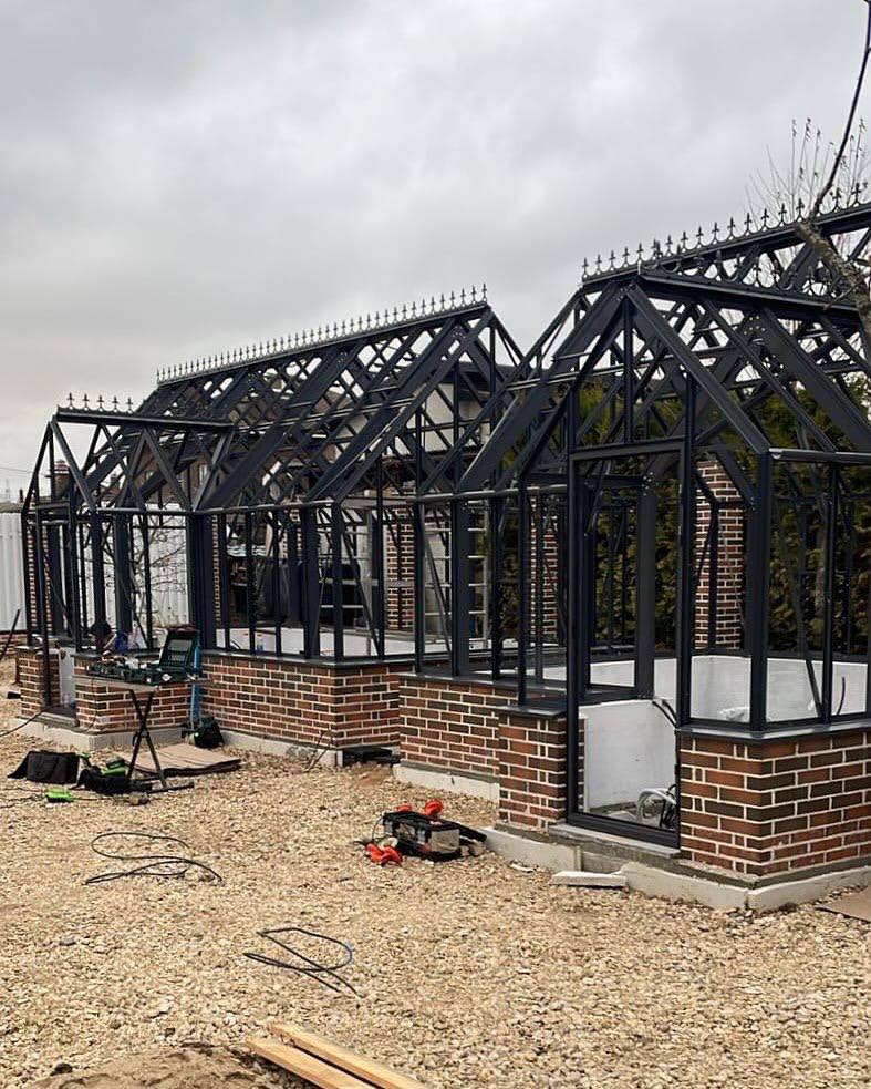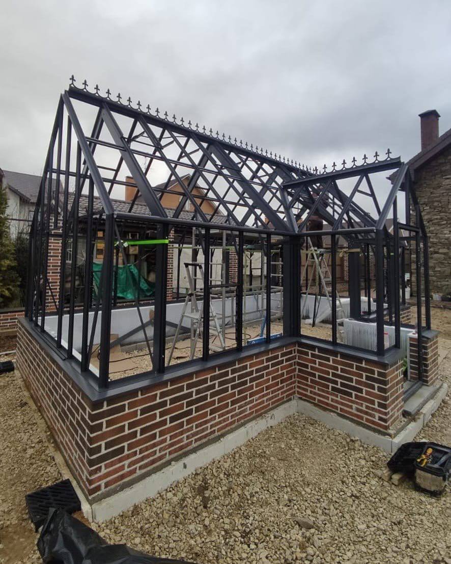 Этот объект был для нас очень важным, ведь мы никогда раньше не делали композицию из двух больших теплиц, а ведь это люксовые модели ВИНДЗОР и здесь всё имеет значение..