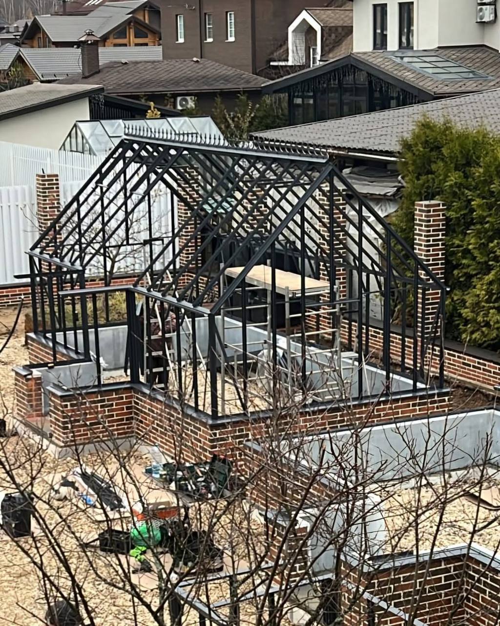 Было важно сделать эти теплицы одинаковыми по высоте, чтобы они гармонировали друг с другом. У нас всё получилось отлично!